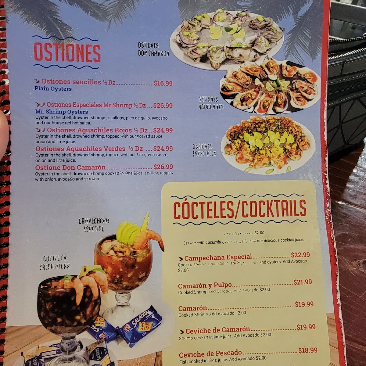 The menu highlights fresh seafood such as shrimp tacos, oysters, and the unique Campechana Especial En Coco, alongside classic Mexican staples like enchiladas and quesadillas. Signature drinks like the Michelada and Cadillac Margarita provide a refreshing balance, often enjoyed during gatherings or while soaking in the vibrant sounds of live music and karaoke.